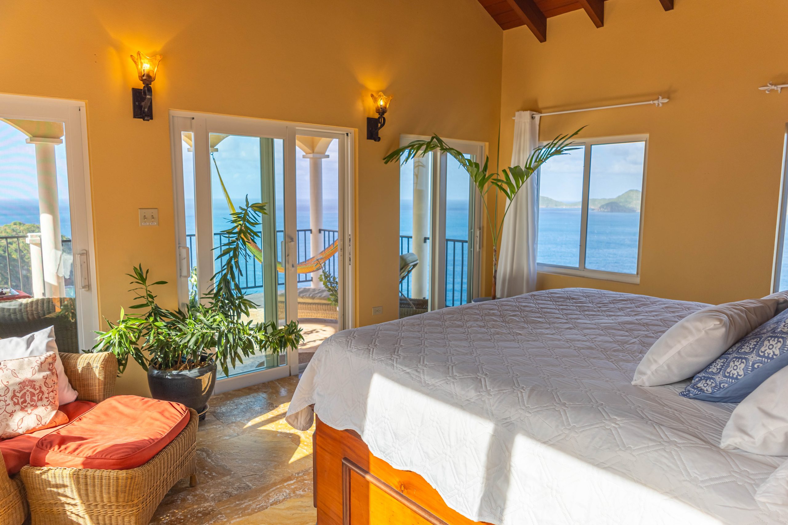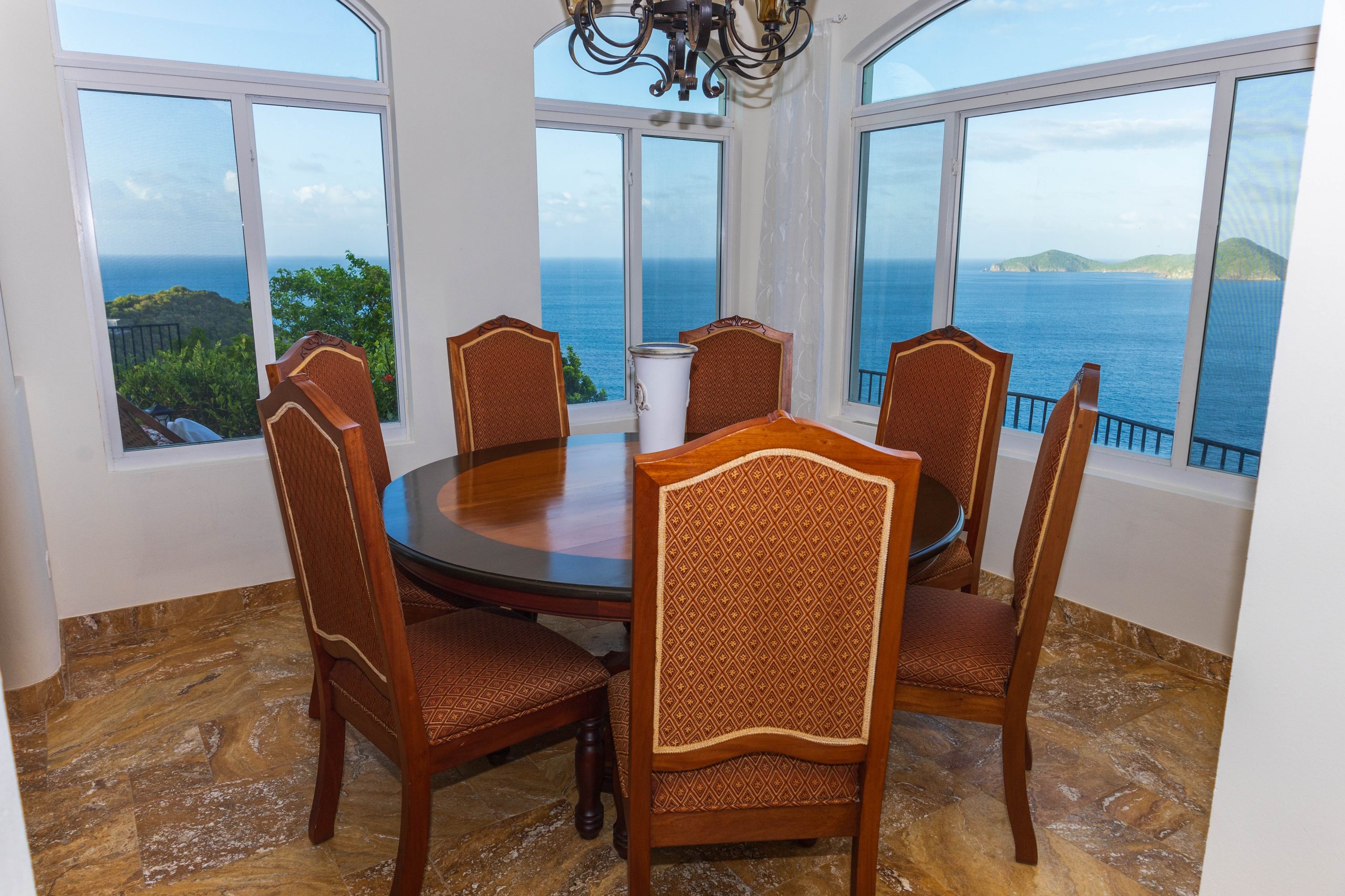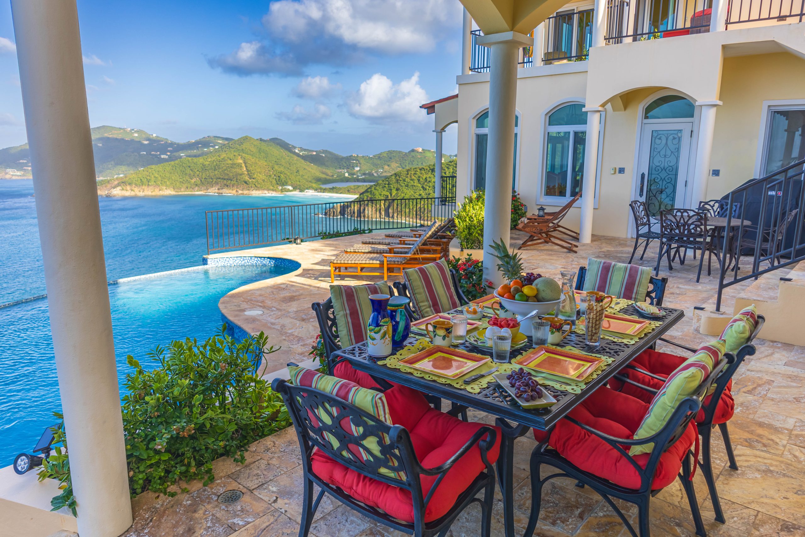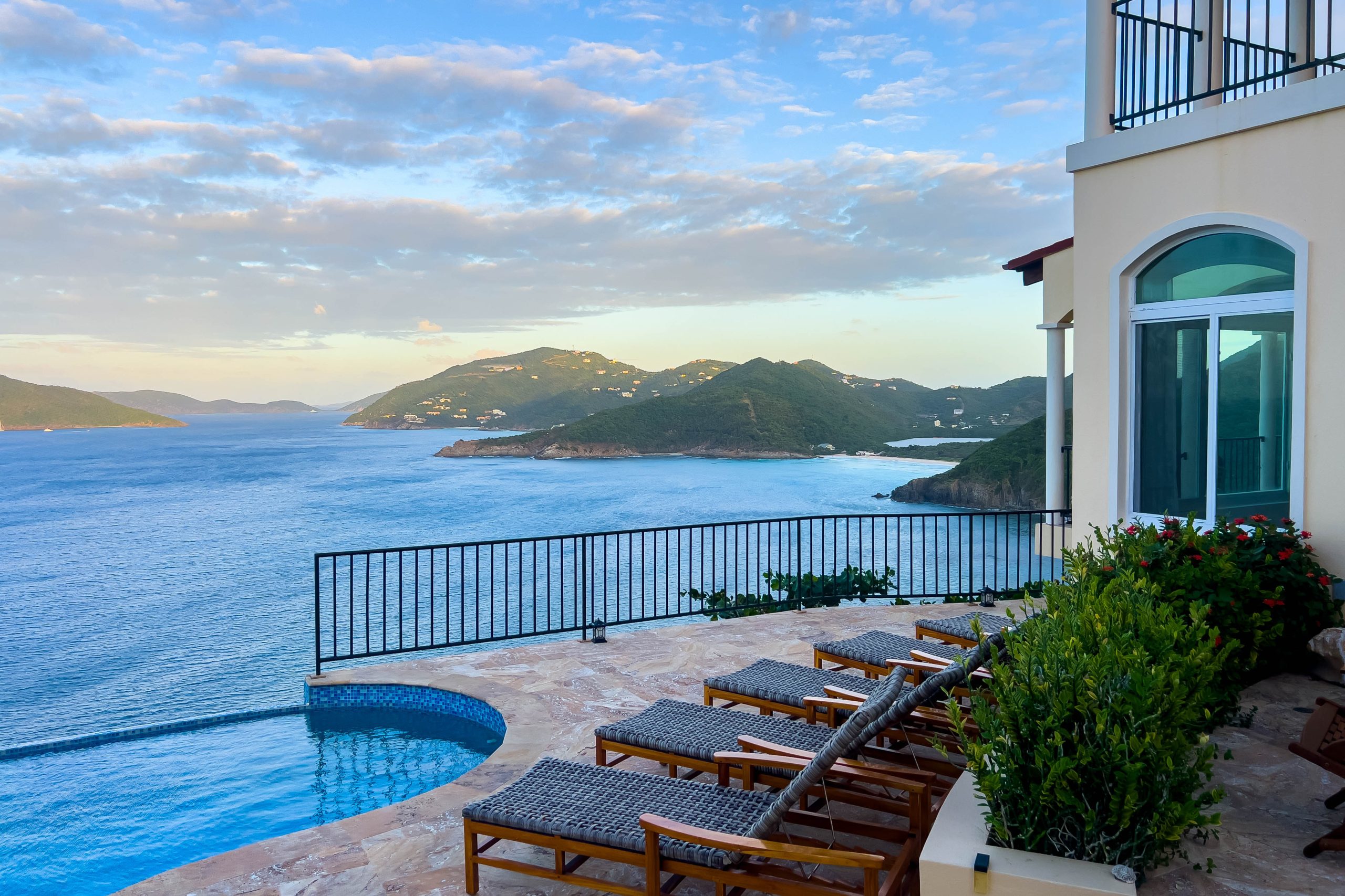 This 5,000 sq. ft. Italian‑inspired villa features panoramic views of Guana Island, Little Camanoe, the Dogs, and Necker Island. The estate blends old‑world charm with modern comforts including high‑speed Wi-Fi, home theatre, Sonos sound, and security cameras. Perched high above Cooten Bay, it enjoys constant breezes and peaceful natural surroundings.