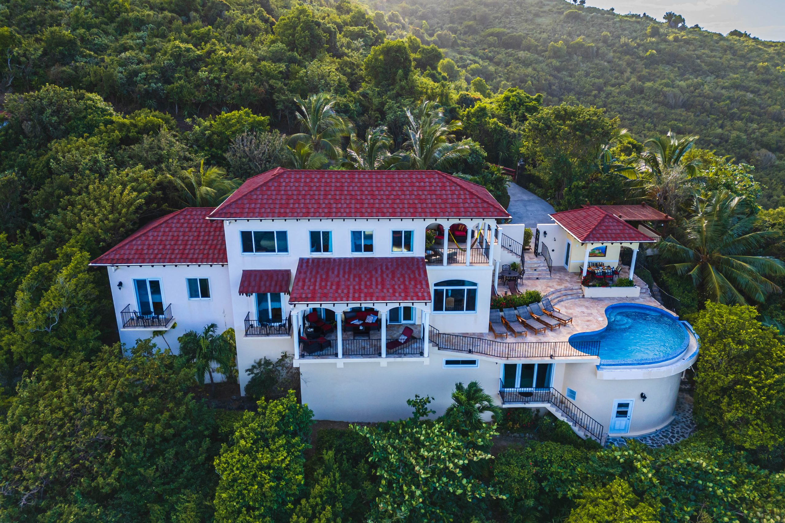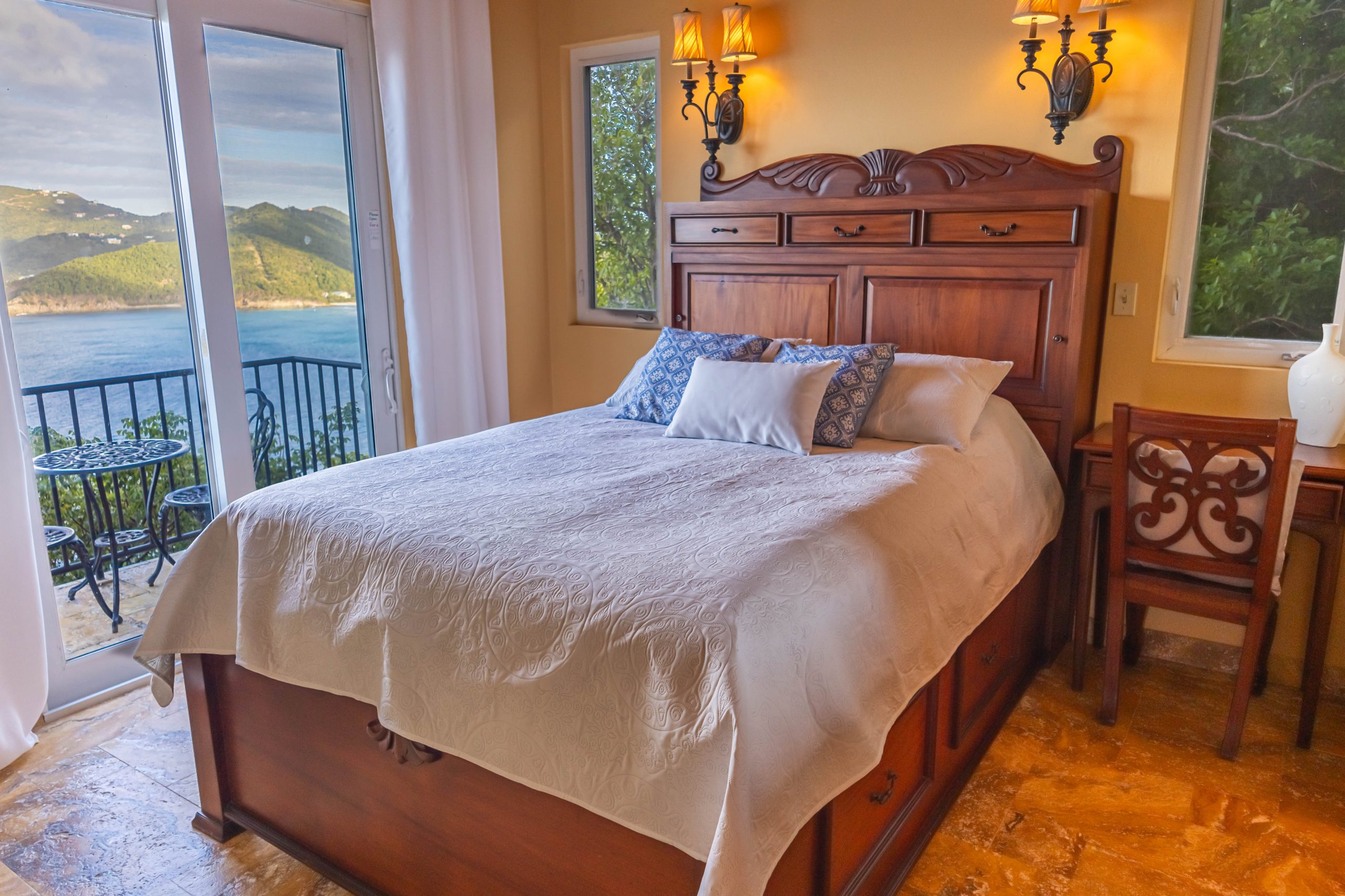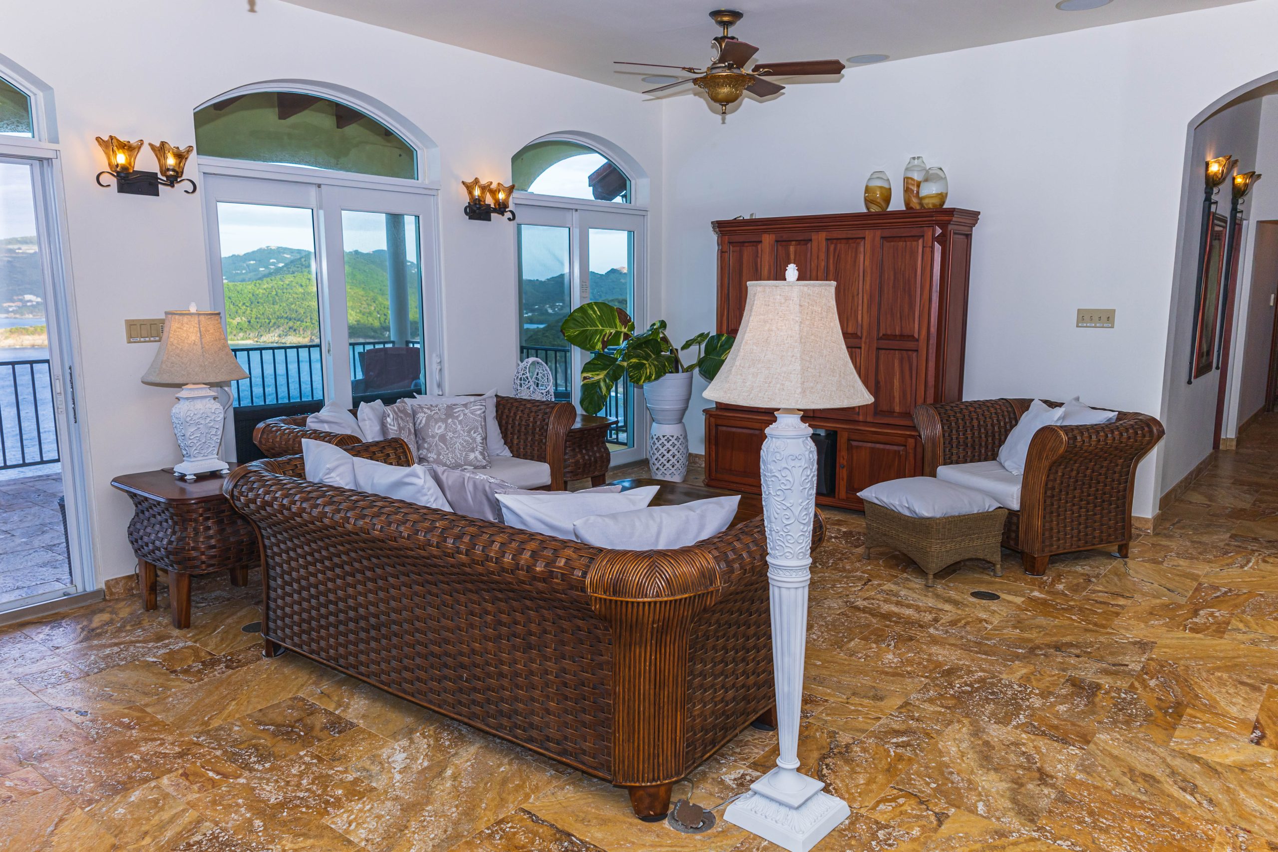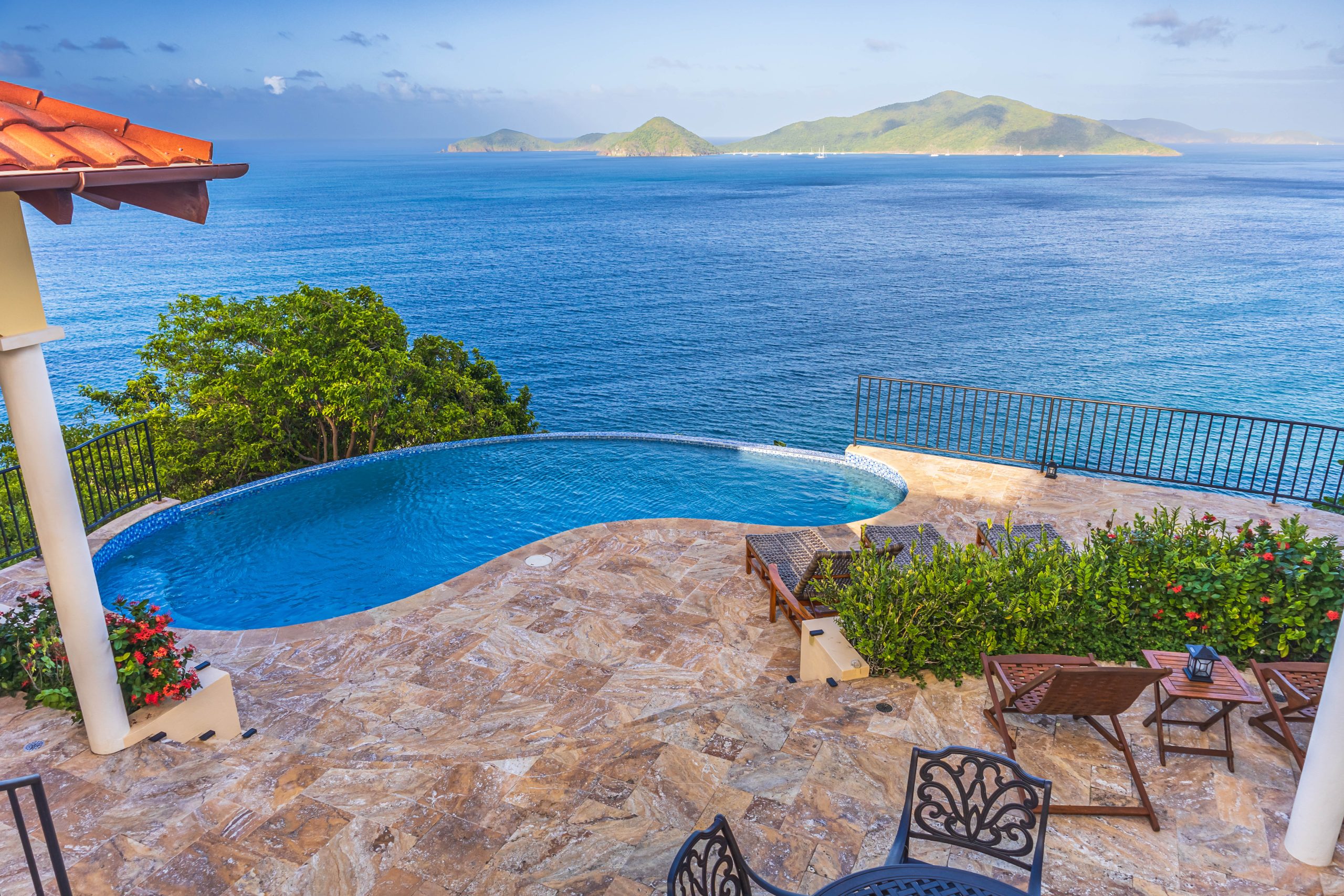 This 5,000 sq. ft. Italian‑inspired villa features panoramic views of Guana Island, Little Camanoe, the Dogs, and Necker Island. The estate blends old‑world charm with modern comforts including high‑speed Wi-Fi, home theatre, Sonos sound, and security cameras. Perched high above Cooten Bay, it enjoys constant breezes and peaceful natural surroundings.
