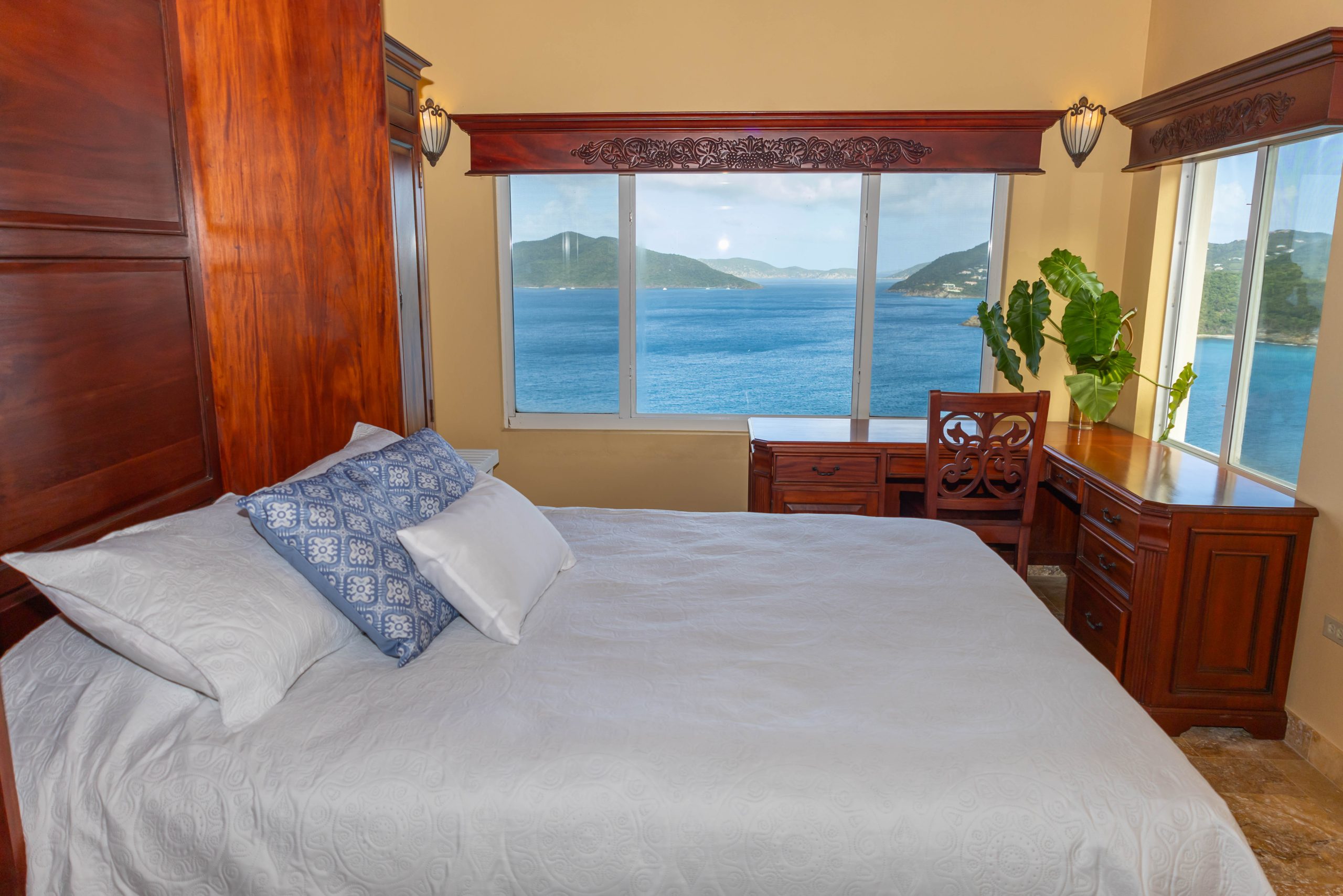 Five air‑conditioned bedrooms with custom mahogany furniture